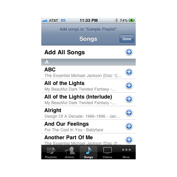 7. Click on the + sign next to the songs you want to add to your playlist.