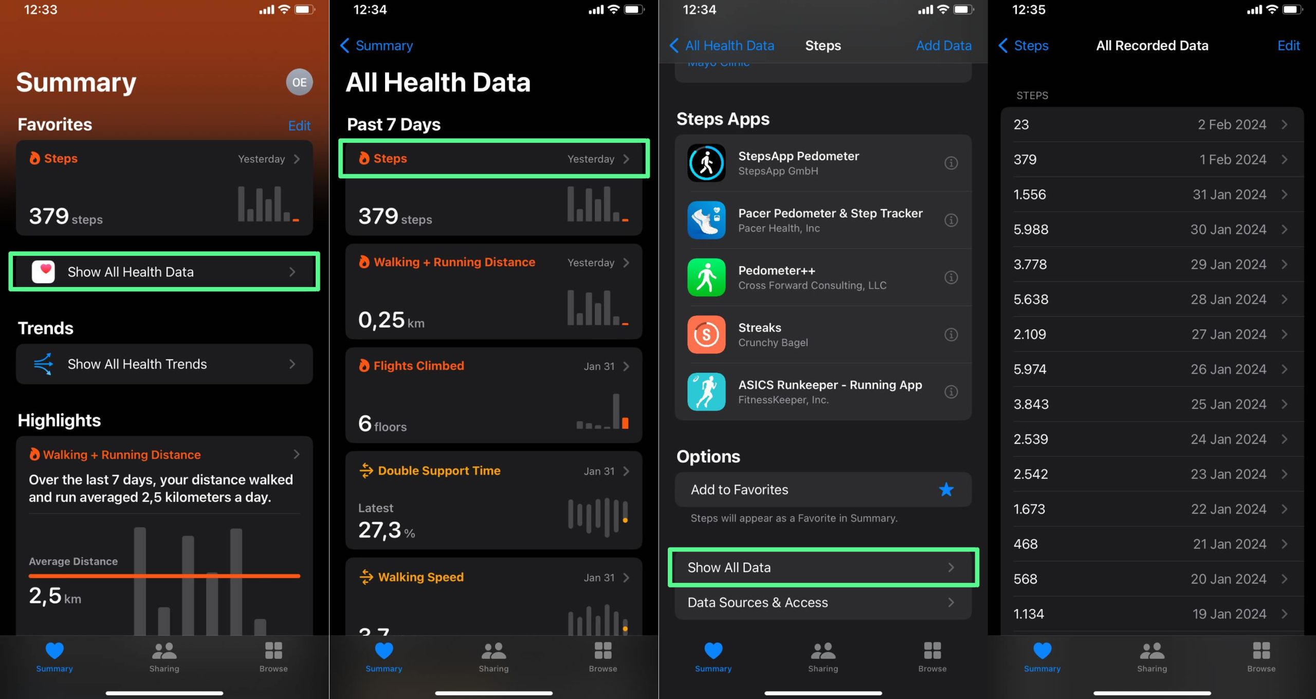 - Review Step Count Entries: A screen will display your step count as recorded by your iPhone, with the latest entry positioned at the top. This information is dynamic and updates frequently.