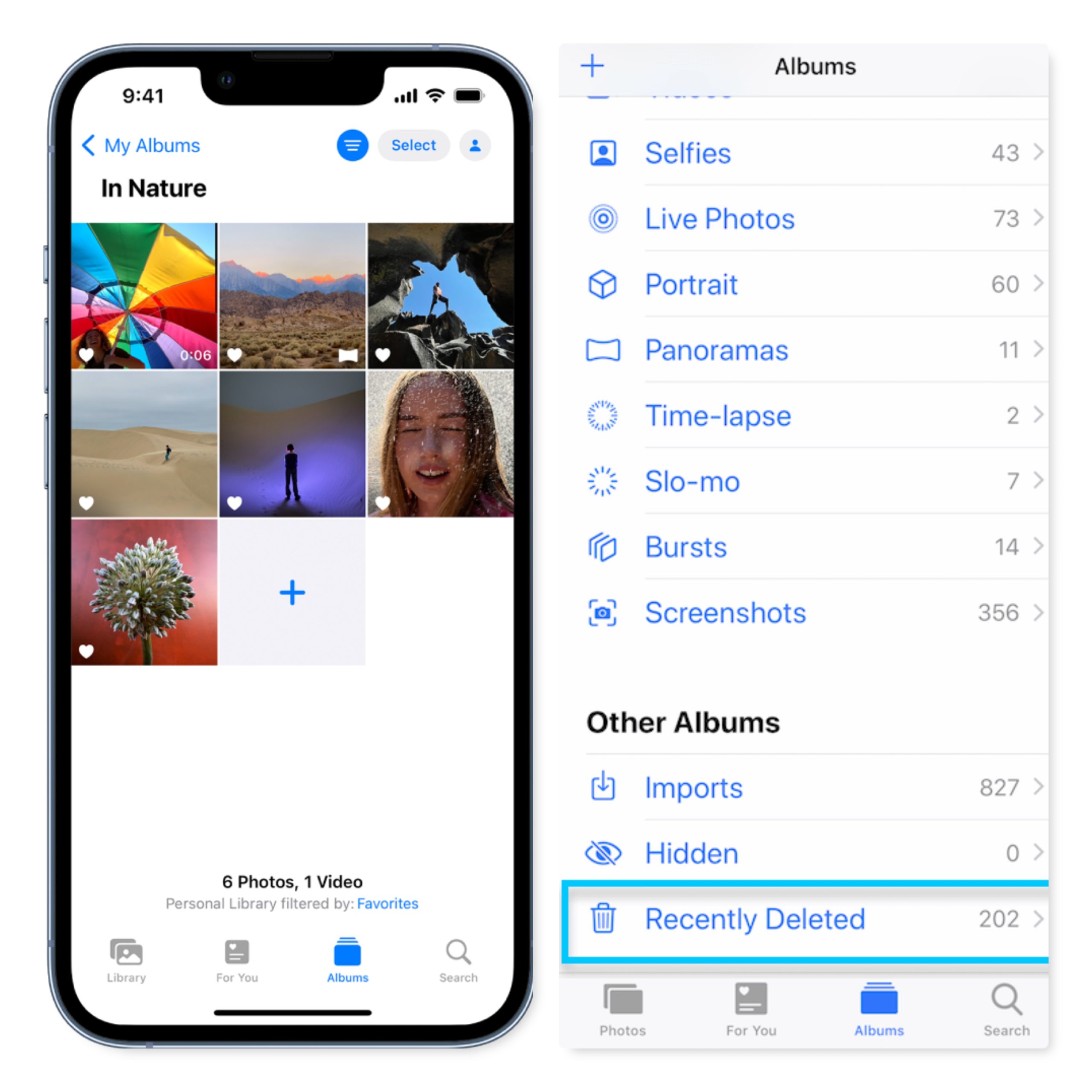 Deleted photos are often moved to the “Recently Deleted” album, where they’re stored for 30 days before being permanently removed: