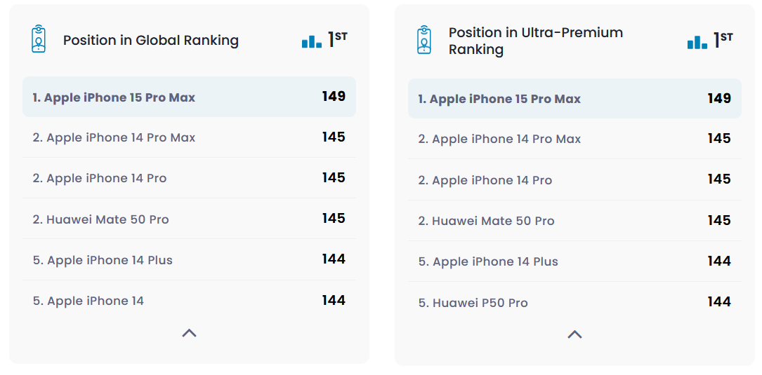 Positions in Global and Ultra-Premium Rankings. Source: DXOMARK