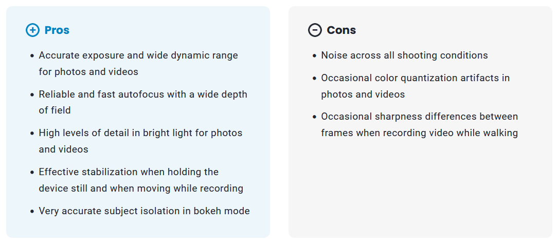 Cons and Pros of iPhone 15 PRO MAX’s Selfie Camera. Source: DXOMARK