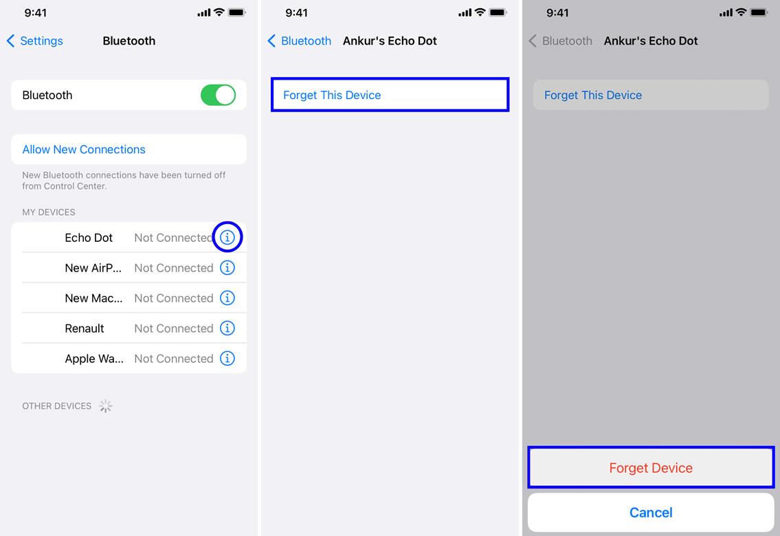 3. Tap “Forget This Device.”