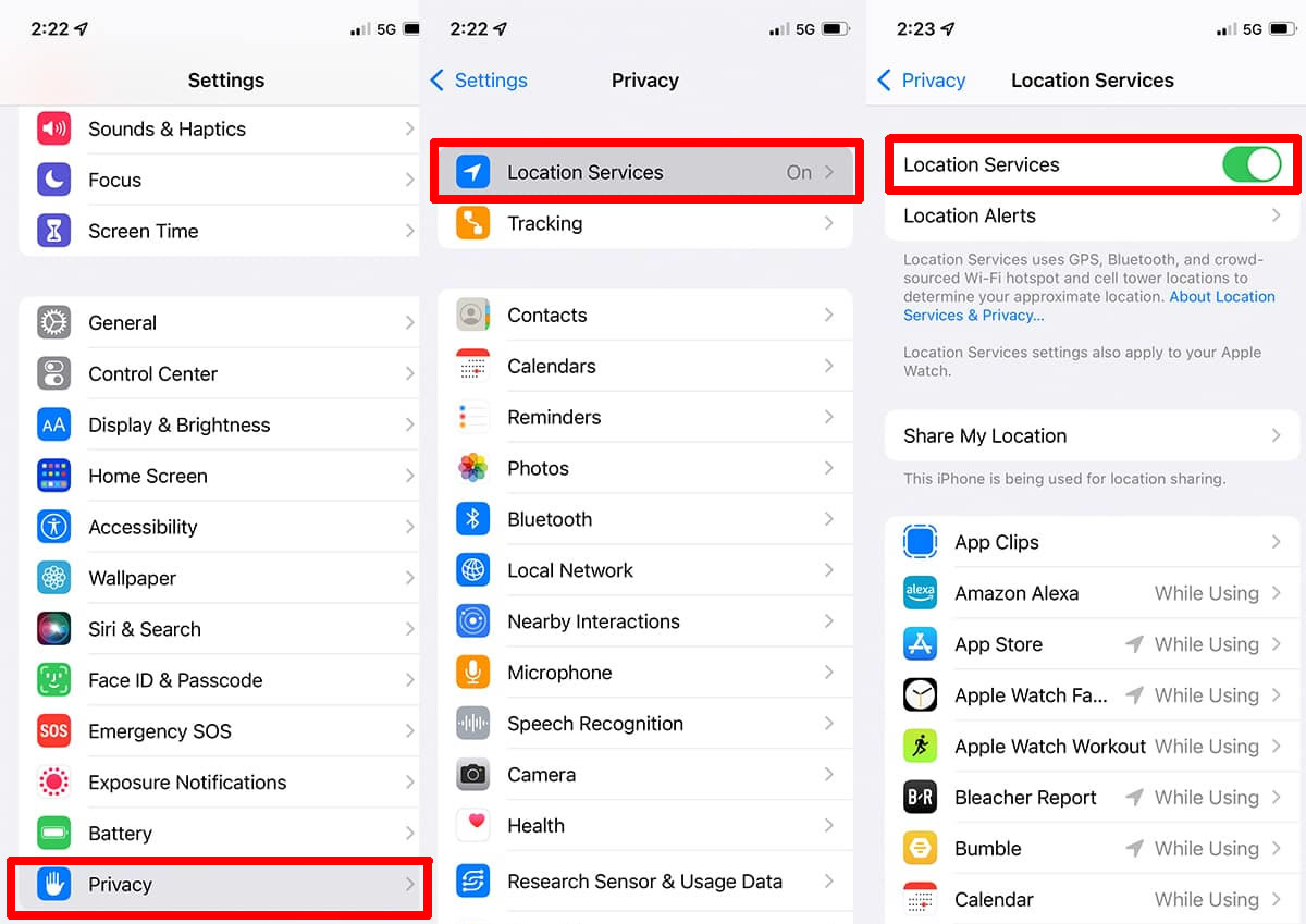 - Go back to Location Services and toggle the features back on.